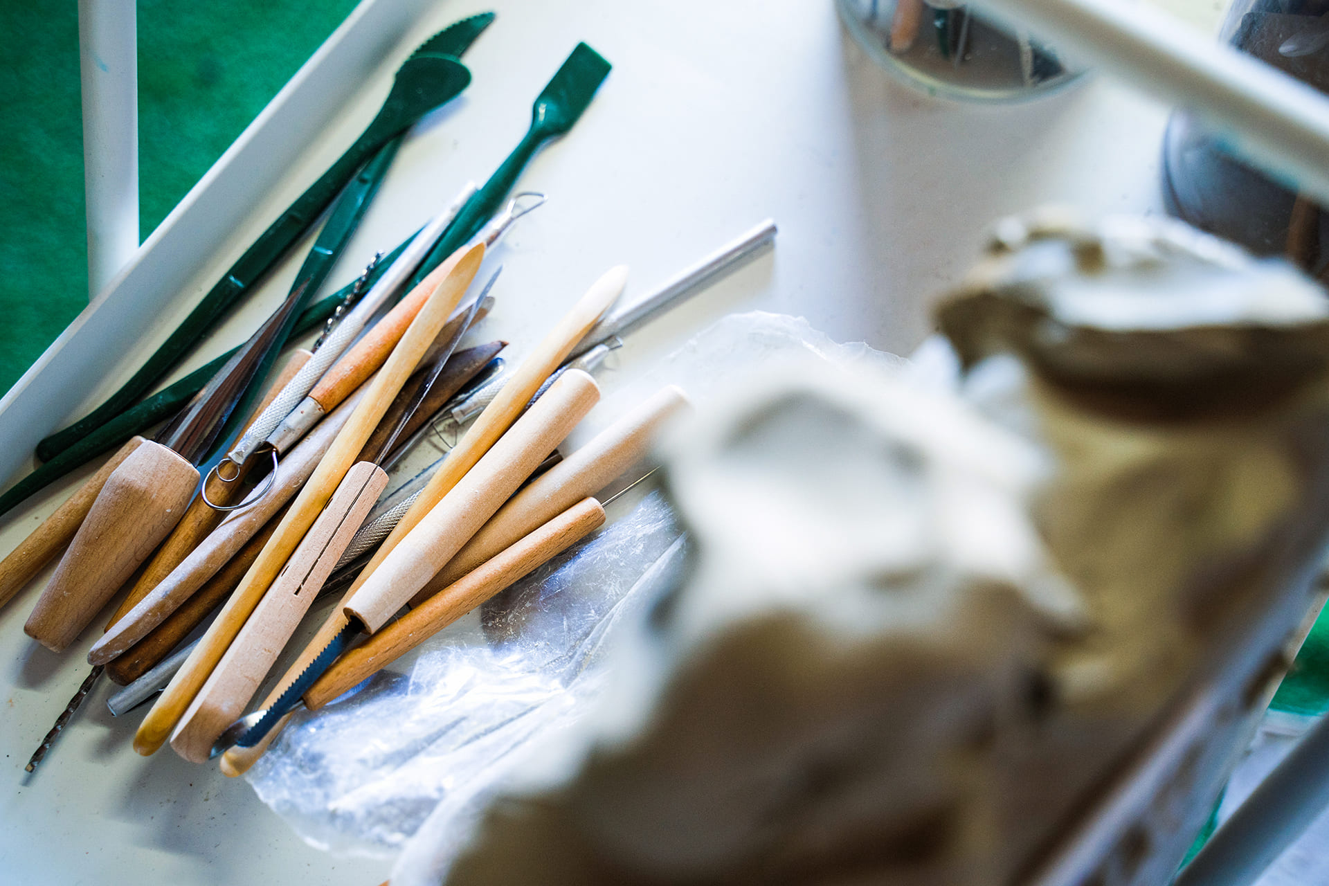 Previamente passo para o papel a ideia e considero os detalhes necessários para a produção. O trabalho segue com a modelação do barro durante longas horas de amor e contemplação. Após o término do protótipo, faço o molde em gesso, avalio e afino os pormenores num rigoroso estudo preliminar do modelo e produzo a madre.