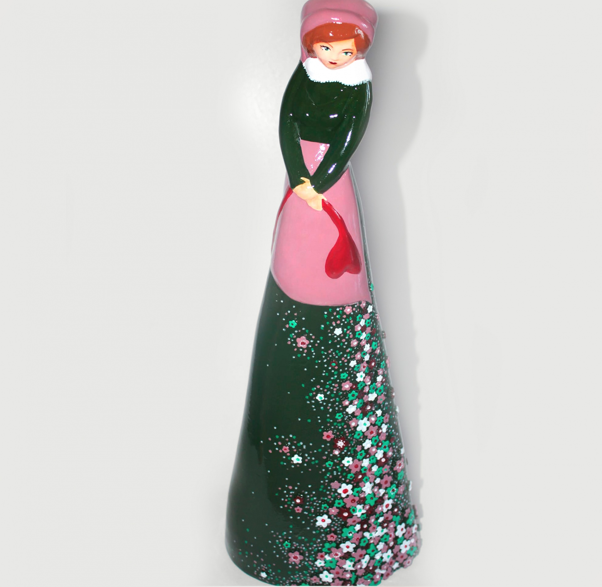 • Figura decorativa feminina em cerâmica com vestido verde e flores