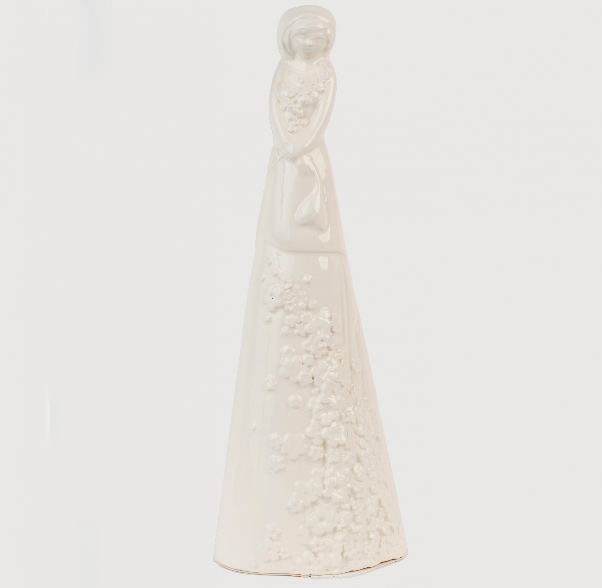 • Estatueta branca em cerâmica com flores em relevo