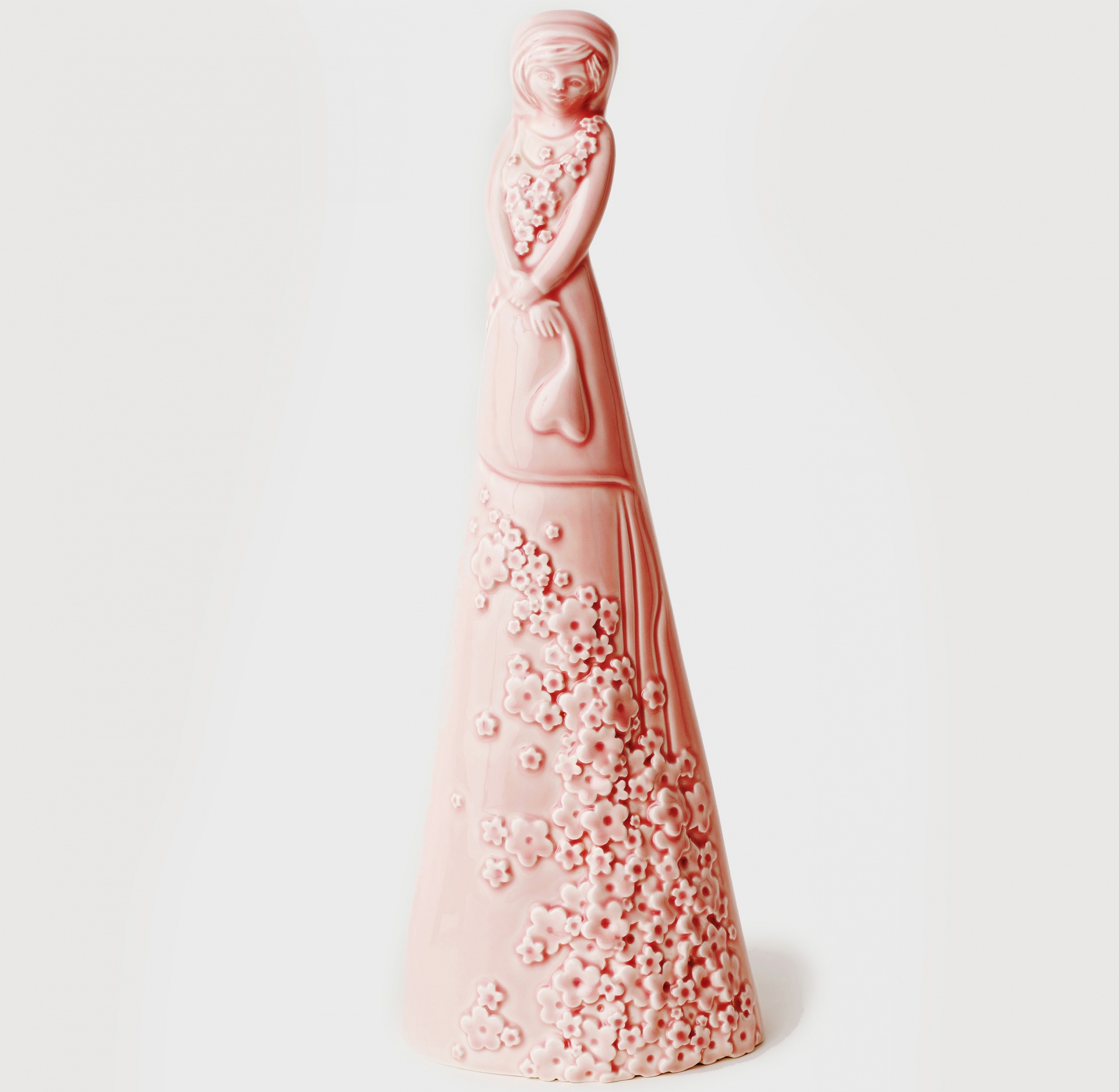 • Estatueta cor-de-rosa em cerâmica de mulher com vestido floral